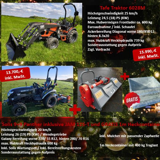 Angebot Traktor Solis-9+9 Panther inkl. JAM 125-T + 1m Heckcontainer und/oder Traktor Tafe 6028M